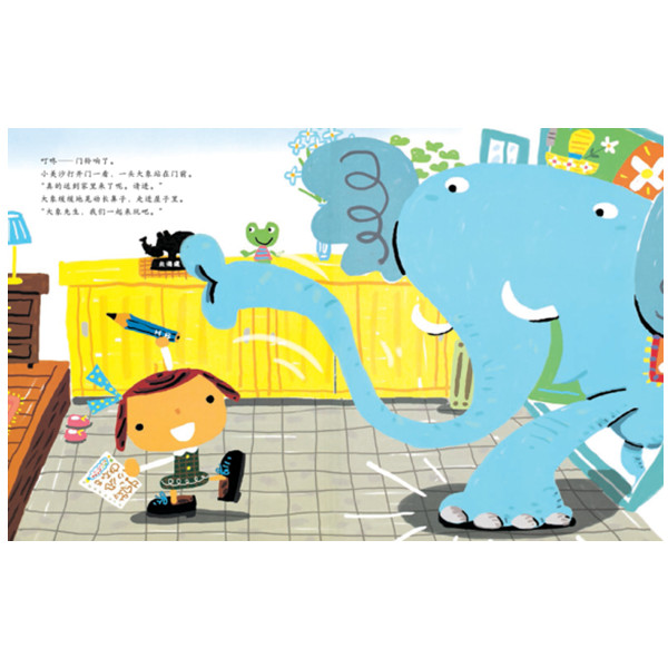 妈妈出门买东西了,留下小美沙一个人在家。 正感到无聊的小美沙,听到门口那儿有点动静,过去一看,门口的信箱里多了一张购物单,购物单上还画着各种动物。 小美沙试着给大象涂上了颜色,没想到不一会儿,门铃就响了,大象真的被快递来啦。这下小美沙有玩伴了,她接着又订购了海狮和长颈鹿,但是这些动物把家里弄得一团糟。 大象还用笔把购物单上的狮子给涂上了颜色,完了!真要来一头狮子吗