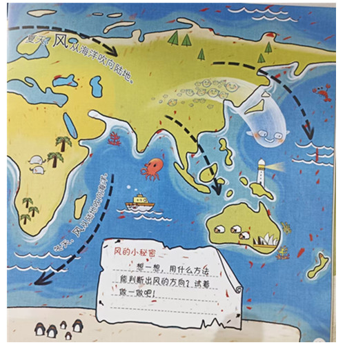 带着孩子寻找身边无处不在的风,孩子可以试着吹泡泡,吹纸片,吹风车,也可以感受一下电风扇,电吹风,空调里产生的风。