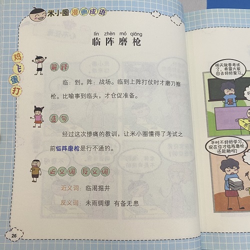 该书属于“米小圈”趣学系列图书。米小圈漫画成语《鸡飞蛋打》本书采用夸张的漫画与严谨释义的成语相接合,给成语赋予了新的时代特色。该书图文并茂,并配有游戏,造句,近义词反义词,可读性强。是小学生学习成语的好伴侣。