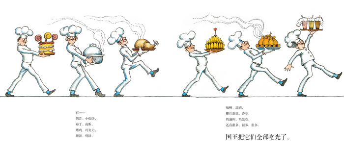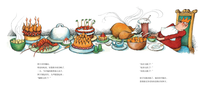从前,有一个贪吃的国王,他最大的乐趣就是吃东西。