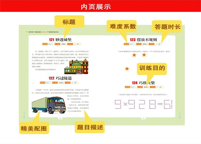 《聪明孩子最喜爱的300个逻辑思维游戏》精选300个逻辑思维游戏,旨在使小朋友通过简单的思考、练习与反复应用达到开发智力的目的。要想在为一个“逻辑达人”,小朋友们只需要利用一些余时间,每天玩几个小游戏就可以做到。