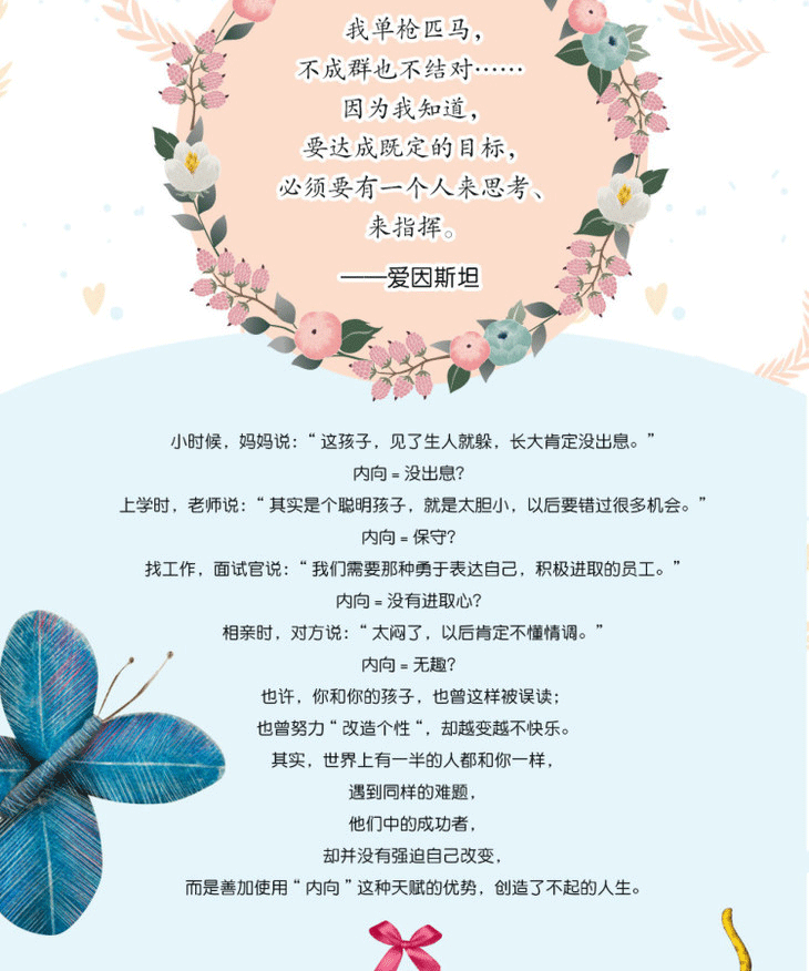 《激发内向孩子的潜在优势:儿童自我成长绘本系列》是源自意大利的畅销绘本系列,由5个直抵儿童心灵的小故事组成。不同于其他成长类绘本,这套绘本不仅第 次将“内向”的话题,带到中国家长面前,而且以一种接纳、积极的态度,去讨论养育内向孩子中的各种问题。全套共5本,将内向拆解为一个个的小话题:勇气、自我、敏感内心、与人交往等等,通过故事深入浅出地讲述,给孩子一种潜移默化式的引导和鼓励。
