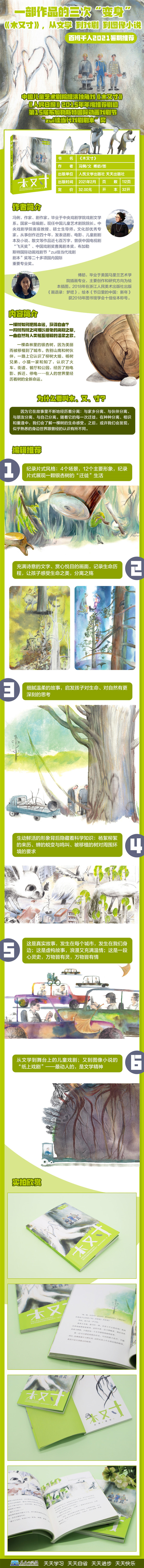一段树与树之间难以避免的离别之旅,一曲自然与人类相互理解的温柔之歌。 一棵森林里的银杏树,因为美丽而被移植到了城市。告别山鹰和树伙伴,一路上它认识了柳树大姐、杨树兄弟、小猫一家和知了,认识了火车、街道、餐厅和公园,经历了拍电影、拆迁、停电……在人的世界里经历着树的全新命运。 为什么要叫“木、又、寸”呢?因为它在故事里不断地经历着分离:与家乡分离、与伙伴分离、与朋友分离、与自己分离。随着她的每一次迁徙,在种种分离、相识和重逢中,我们会了解一棵树的生命感受。之后,或许我们会发现,似乎熟悉的身边世界跟曾经的认识有所不同。