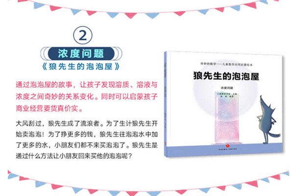 通过泡泡屋的故事,让孩子发现溶质、溶液与浓度之间奇妙的关系变化。同时可以启蒙孩子商业经营要货真价实。