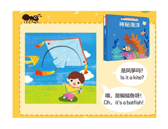 “‘宝宝没想到’主题认知洞洞书”是儿童诗人巩孺萍把丰富的生活常识、有趣的图画创意和巧妙的洞洞模切设计相结合,根据婴儿心智特征专门为0—3岁宝宝创作的认知洞洞书。作者按照认知的主题将原本完全不相关的两种事物通过好玩的创意联系在一起,让宝宝在翻来翻去、戳洞洞的过程中既认识了两种事物,又了解了这两种事物的特性与共性。同时,这部书稿的语言充满了韵律感,让宝宝被童诗般的汉语言中蕴藏的美感充分滋养,在好玩的洞洞游戏中认知世界、启蒙英语,同时提升观察能力、联想能力和理解能力。《神秘海洋》是本系列中的一本,作者通过宝宝在生活中常见的事物,比如喷泉、风筝、小树、毛毛虫等来帮助孩子认识神秘的海洋。比如,作者紧紧抓住喷泉和鲸鱼喷水的状态之间的相似之处、风筝和蝙蝠鱼之间的相似之处来引导孩子从细节处观察和认识海洋动物,并了解不同海洋动物的形态特征,同时也启发孩子展开想象、积极联想,提升观察力。