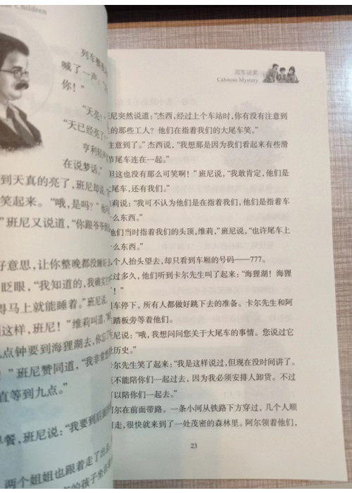 “棚车少年”系列是一套适合8—12岁儿童阅读的中英双语经典儿童文学读物。书中英文单词、句式螺旋式引入,易读易懂,精彩有趣的冒险故事,让人欲罢不能,80年来深受世界各国孩子的喜爱。 亨利、杰西、维奥莱特、班尼四兄妹是孤儿,在一个破旧的棚车里安了家,开始了相依为命的生活。他们经历了一场场关于善良和爱的奇遇探险,黄小屋的秘密、神秘的农场、冷淡的简姑婆,还有诡异的灯塔……后来,爷爷找到了他们,带他们一起回家,过上了幸福快乐的日子。孩子们可以在这些惊险刺激的冒险中体验生活,在曲折离奇的经历中学会成长,在阅读中感受到勇气、智慧和良善的力量······