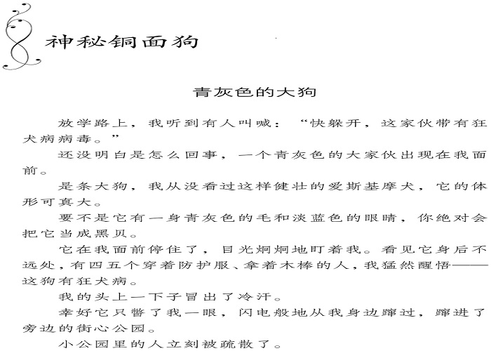 故事从一开始就充满了悬念和刺激。塔塔为了躲避打狗队,将孩子藏匿起来,为了早日找回孩子,它找到懂得鸟兽语言的我来帮忙……直到*后死去也没有放弃对孩子的寻找。故事的*后,占据塔塔身体的居然是一个深海怪物,但却是一个有情有义,信守诺言的深海怪物。在他的帮助下,小主人公脱离了危险,坏人也得到了应有的惩罚。小朋友们从故事中可以读到母爱的伟大。同时也能够认识到人性贪婪的可怕。