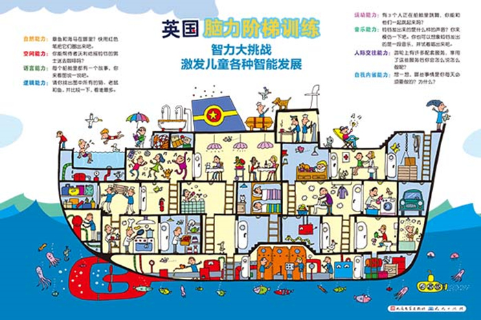 ★“英国脑力阶梯训练”就是Usborne在2014年最新出版的益智游戏书,包括“视觉思维能力篇”“逻辑思维能力篇”“综合解难能力篇”三个部分。在300多个轻松的游戏氛围里,让孩子的眼、脑、手的运动得到化学反应般的综合效应。“视觉思维能力篇”开启孩子快速形象记忆的能力;“逻辑思维能力篇”帮助孩子建立抽象思维的思维方式;“综合解难能力篇”鼓励孩子学会积累经验,找到错误并进行自我纠正,最终获得成功的喜悦。