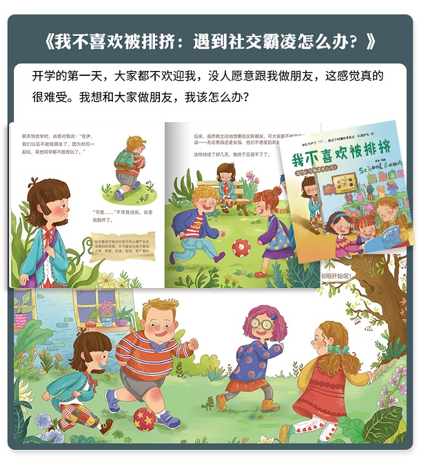 有关校园霸凌事件的新闻通过新媒体不断被报道并受到广泛关注,在孩子年纪较小时遭受这些欺凌甚至暴力之后,不仅会对他们的身体造成伤害,更会对其心理产生极大的负面影响。然而欺凌者和被欺凌者往往都是受害者,虽然二者具有明显的性格标签,但两种角色也会随着时间和情况发生转变,孩子在不所知的情况下完成“霸凌” 行为,但很可怕的是孩子并不知道这就是霸凌,也不知道该如何处理,如何求助。对此要时刻了解孩子的心理,以便及时调整孩子的行为,让孩子能正确地明断对错。通过大量的调研,结合孩子在生活中可能会遇到的各种隐性危害,以套书的形式(共8本)将自我保护的正确方式传递给孩子,让孩子能够从中学会辨别霸凌、远离霸凌的方法。安全有效地对霸凌说“不”!