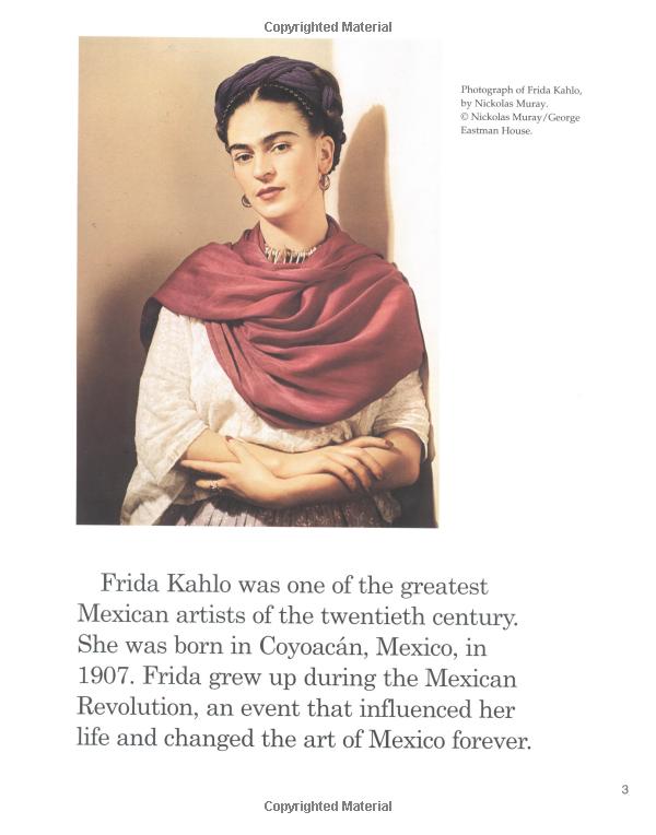 Discusses the life of Mexican painter Frida Kahlo, including her childhood, her art, and her marriage to Diego Rivera.