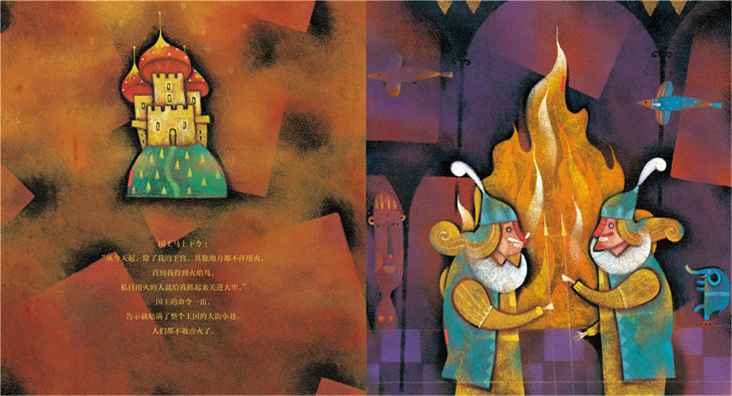 有一个国王他喜欢收集全世界稀奇古怪的事物。他的收藏里有会讲笑话的鹦鹉、会和人下棋的猴子、永远长不大的迷你象。一天,他无意间听说了一种只会出现在火堆里的神奇鸟儿——火焰鸟,为了捉到它,国王下令全国禁火,百姓们的生活受到了巨大影响,怨声载道。终于有一天,火焰鸟发现了皇宫中闪耀的火光,飞了进去。*终,国王因为自己的贪婪引发了大火,悲惨收场。