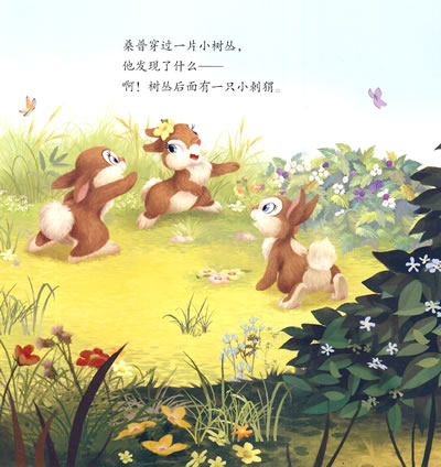 在温暖、明亮的夏日阳光里,桑普和姐妹们在森林中玩耍。一只兔子追着另一只满地跑,一只兔子躲在一边,另一只在旁边咯咯地笑。桑普穿过一片小树丛,他发现了什么——啊!树丛后面有一只小刺猬。“你好!”桑普说,“你想和我们一起玩吗?”小刺猬抖抖身子,然后跌跌撞撞地站起来。但是,小刺猬没有回答。她低下头,蜷起身子……