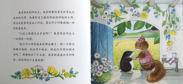 《松鼠斯康帕的晚会》松鼠斯康帕的忘性很大。这不,她邀请了小伙伴们来参加晚会,却把准备做晚会馅饼的橡子忘在树下了。晚会就要开始了,她为晚会准备的橡子却不翼而飞了……毛茛草原的小伙伴们,快来帮她破案吧!