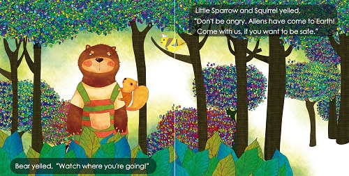 一天,小麻雀在草丛中跳来跳去,一心找食物,突然,一片乌云飘来,遮天蔽日!小麻雀看到了可怕的一幕——一个妖怪!地球上没有这样的妖怪!他又高又黑!许多手向外伸出!小麻雀赶忙四处奔走,警告他的朋友:“松鼠!快跟我走!要不就危险啦!外星人来地球了!