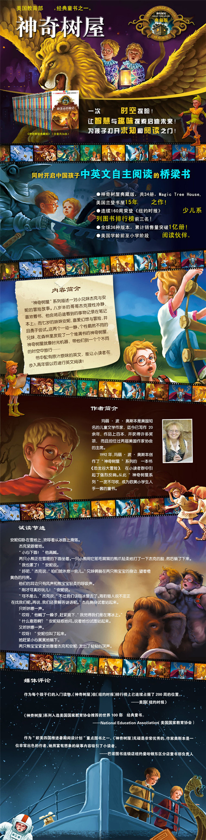 “神奇树屋”系列描述一对小兄妹杰克与安妮的冒险故事。八岁半的