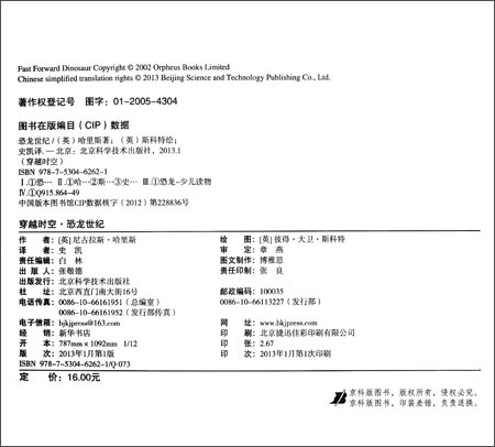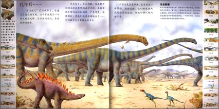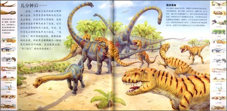 《穿越时空:恐龙世纪(精华版)》讲述的故事好像一次旅行,但这不是一次普通的旅行,你不用乘坐飞机、汽车或者轮船。事实上,你足不出户,就可以穿越时空!打开书本,时光在指尖飞跃:几天、几年甚至几千万年。每个时刻——也就是你旅行中的每一站——都是恐龙一生中的新篇章:在巢穴中的童年,遭遇捕食者,举家南迁,洪水中殒命,遗骸石化,化石出土——一切都在告诉你一只恐龙的故事。想像一下,你正站在几亿年前的中国,身边是酷热的丛林和泥泞的沼泽。恐龙的叫声打破了寂静,它们挪动着庞大的身躯缓慢前进。一只小马门溪龙降临到这个世界上,成年后它将是一个25米长的庞然大物。然而,从它破壳而出的那一刻起已经危机四伏,什么样的命运在等待着它呢?