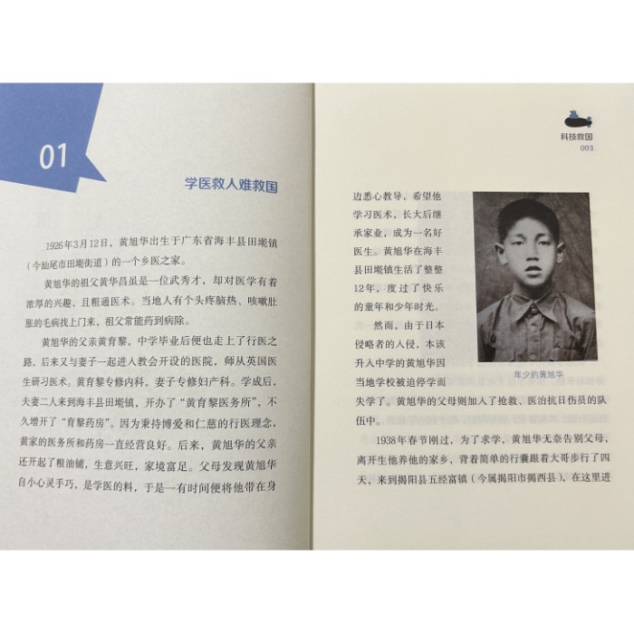 《深海利剑》用真实的故事讲述了“共和国勋章”获得者黄旭华院士在求学和科研中的不平凡经历,呈现了主人公的科学精神和爱国情怀,还首次曝光了黄旭华院士在工作中的一些照片。尤为珍贵的是,作者还编辑整理出与主人公从事行业相关的基础科学知识。可以说,这是一套集人物故事与科普知识为一体的,视角独特、结构新颖的青少年品德教育与科学启蒙的读物。黄旭华,中国工程院院士,“共和国勋章”获得者,被称为“中国核潜艇之父”。他隐姓埋名30年,成功研制了中国代核潜艇,为中国海基核力量实现从无到有的历史性跨越做出了卓越贡献。