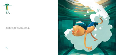 这个故事专门送给胆小的小朋友。文字的字里行间满是鼓励的话语和暗示,插画师也用独特的绘画视角烘托出爸爸妈妈和教练给予朱里的心理安慰与支撑。图文并茂的细致描绘,让孩子在阅读的过程中学会勇敢,鼓足勇气挑战困难。读完故事,快速将书从第一页翻到最后一页,会出现神奇的“纸上动画”,池塘里的游泳高手小青蛙会为我们带来精彩的舞蹈。