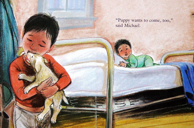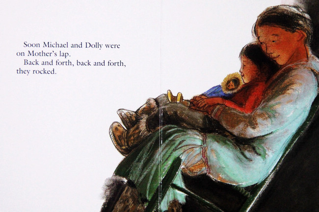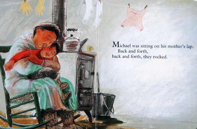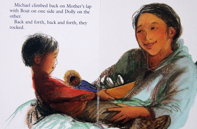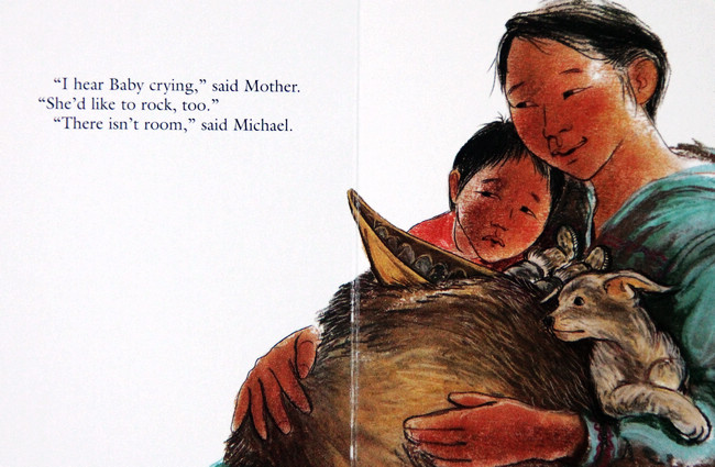 妹妹睡着了,小男孩跑去坐在妈妈腿上,摇啊摇的,好高兴!后来,小男孩跑去拿他的娃娃来,一起坐在妈妈腿上摇啊摇,再拿他的木船......小男孩拿了好多心爱的东西来,摇啊摇,好高兴!啊,妹妹醒了,小男孩嘟着嘴说不够位置了,妈妈说试试看。妈妈的腿上永远够位置!