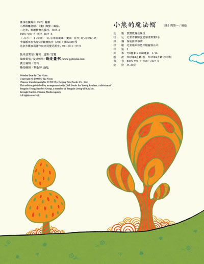 陶努一,生于美国俄亥俄州亚克朗市,在纽约长大。她就读于纽约视觉艺术学校,并于2007年在插画专业上获得了艺术硕士。《小熊的魔法帽》是她毕业作品,灵感来源于一个有着神奇能力的怪模样的笨笨熊。