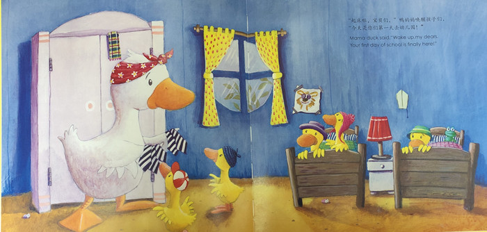 “起床啦,宝贝们。”鸭妈妈唤醒孩子们,“今天是你们第一天去幼儿园!”