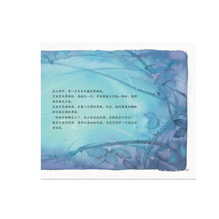 艾丽莎公主伤心欲绝,于是便离开了皇宫,踏上了寻找哥哥们的道路。