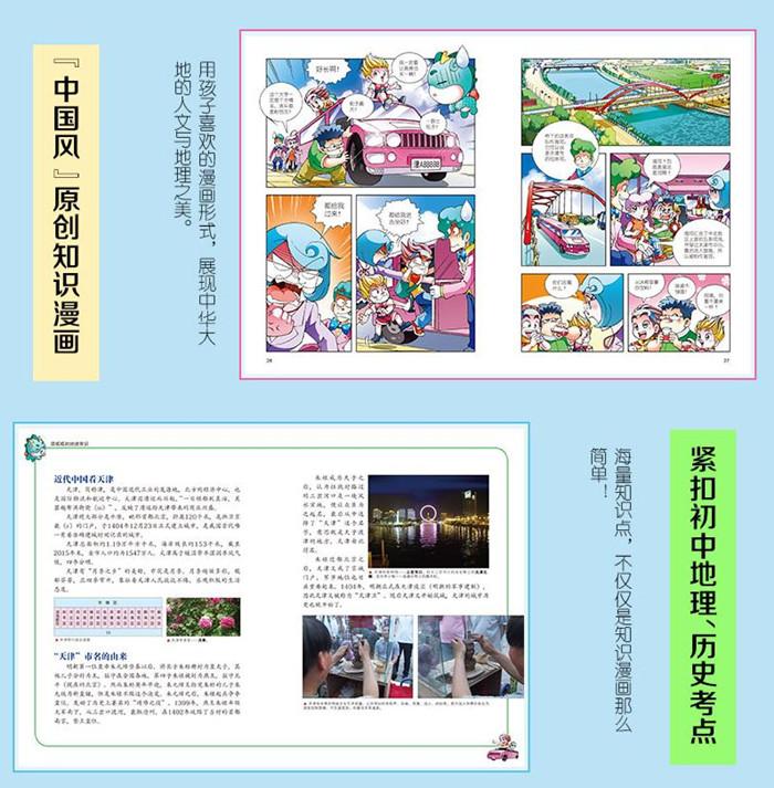 本书为二十一世纪出版社倾心打造的中国原创动漫品牌图书,采用漫画形式进行创作,以惊险刺激的寻宝故事为线索,介绍天津丰富多样的地理风貌、历史遗迹、文化艺术、物产资源等,让小读者体验“足尖上的中国”。《天津寻宝记》画面精致,行文活泼,亲和而有感染力,此书作为小读者认识天津、了解天津的入门书籍,也是极佳的。
