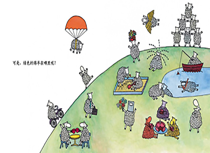 “这是蓝色的绵羊,那是红色的绵羊;这是正在洗澡的绵羊,那是躺在床上的绵羊……那么,绿色的绵羊在哪里呢?”带着这个简单的问题,孩子们会把这本书中展现的绵羊家族数个遍。但是,我们始终没有发现绿色的绵羊究竟在哪里。至于答案嘛,不到最后一刻是不会揭晓的。该书获得澳大利亚儿童书委员会幼儿阶段2005年年度图书奖,颜色认知、对比概念、探索游戏,实现孩子的快乐认知,简单的图画,诙谐的重复,培养孩子耐心的性格和乐观的生活态度。