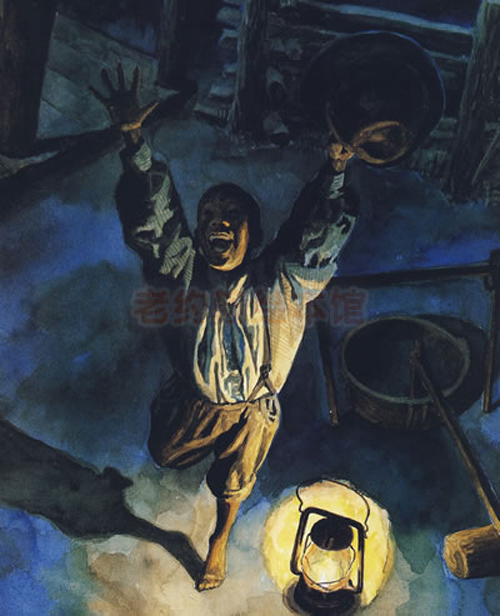 它讲述了一个生活贫苦的孩子对学会阅读的渴望。生活的重担和小小的年龄如此不相称,然而对知识的渴求和与命运的抗争的意志却无比坚决。黑沉沉的夜幕,象征被愚昧蒙蔽双眼的人心,而黑暗中那盏小小的灯,散发着温暖的光芒,仿佛?本和知识给沉重艰难的人生指引了方向。当孩子学会了识字,懂得了阅读,那振臂高呼发自肺腑的狂喜从画面上直指读者的内心。读到这里,你能不情不自禁地感动于这个孩子对书本的执着么?