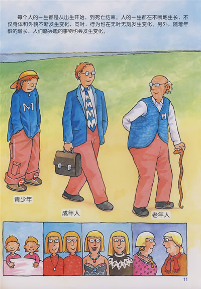 描写了从出生到长大的过程,人体的构造、不同器官的功能和作用、人体会出现的各种疾病等等,文中还有大量此主题中可能出现的词语