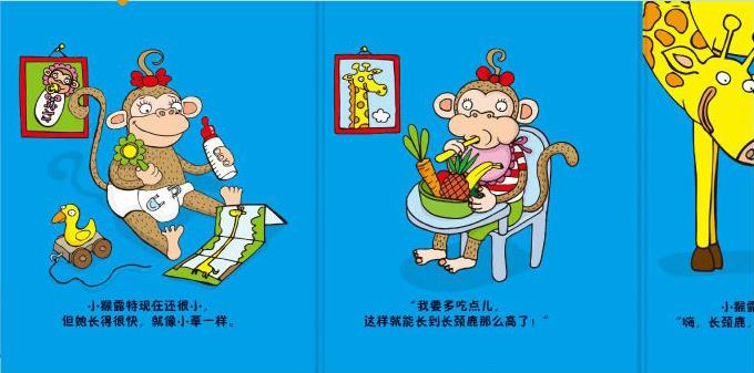 本书是一本形式特别、内容有趣的图画书,讲述的是小猴露特想要长得和长颈鹿一样高的故事。