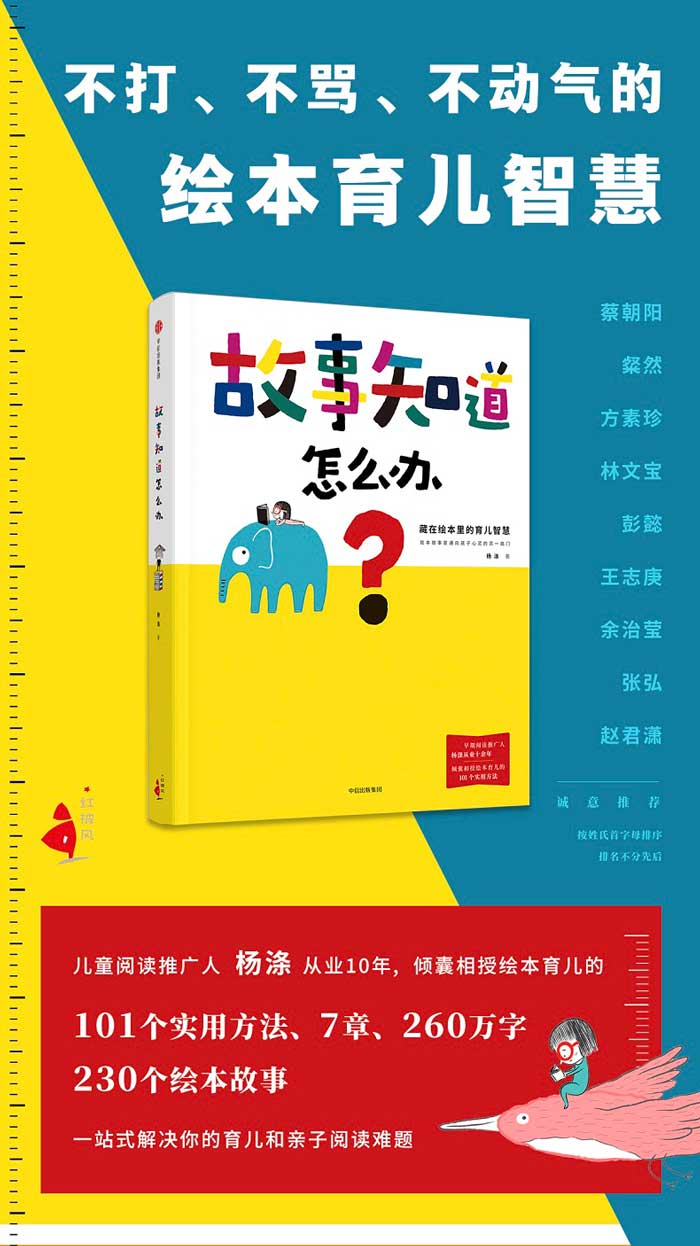 本书作者是国内知名儿童阅读推广专家杨涤,从事童书出版和推广十余年,她以资深儿童早期阅读从业者的身份,结合自身经验,从品格塑造、心理调适、社会交往、生命教育、认知能力、健康运动和亲子阅读技巧与误区七个方面,以家长困惑的常见问题入手,引入绘本故事,发挥绘本育儿的功能,向家长传递实用有效的育儿技巧和经验,帮助家长正确教育子女,建立和谐的亲子关系。