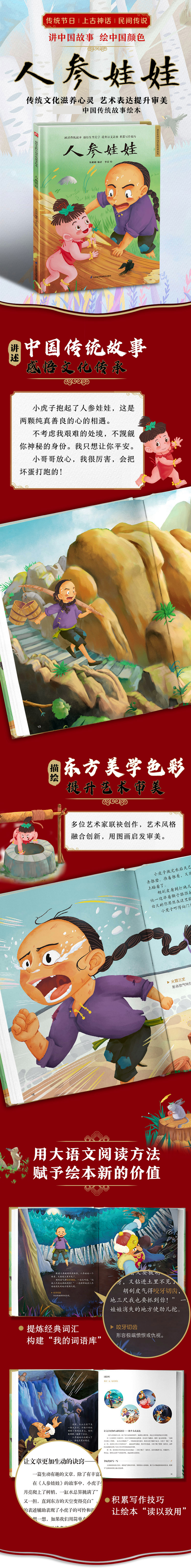 1、精选上古神话和民间传说,让孩子透过原汁原味的中国传统故事,了解传统文化,增强文化自信。 2、多位艺术家联袂创作,各具特色的画风,让孩子感悟多元的东方美学。 3、顺应大语文趋势,加入词汇积累、写作技巧指导,让孩子“读以致用”,提升阅读力、写作力。 4、精装大开本,感受画面带来的视觉冲击;绿色环保印刷,呵护孩子阅读