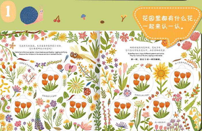 本书以花园为背景,用拟人化的方式给孩子介绍了海洋中生活的小动物,蝴蝶、蜜蜂、瓢虫、蜗牛等,孩子能轻轻松松理解这些小动物的主要特点。全书绘画风格独特,采用零碎的动植物、事物展现了每页中的“主角”主要活动的环境,画风清新、色彩亮丽;另外,翻翻以及视觉记忆游戏的巧妙结合,有趣的找寻游戏,更是对孩子眼力的大考验,能锻炼孩子的记忆力,培养专注力、观察力;巧妙加入的数量变化还能对孩子进行数学启蒙。