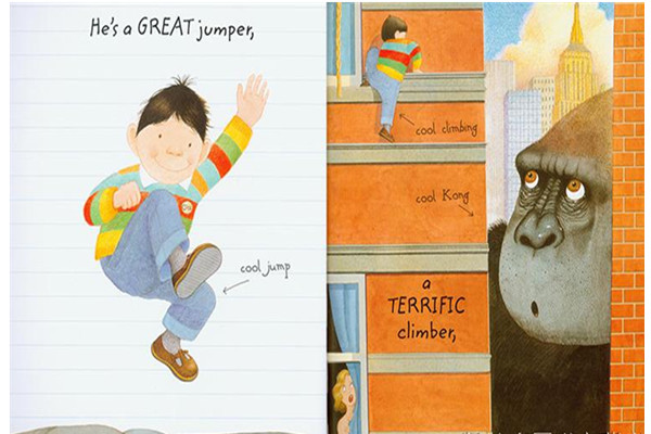 我的哥哥有着超酷的耳朵,超酷的头发,穿着超酷的毛衣,超酷的牛仔裤.....。他可以爬的很高,他踢的很准,他可以跑得很快...然后飞起来啰~超酷的! 在这本"安东尼.布朗"的最新作品里,不改他幽默的画风。在每个画面中还贴心的写上每个物件的单字,而且他们都是超酷的唷!! 我的哥哥.是超酷的哥哥.翻开最后一页.Guess what ?!