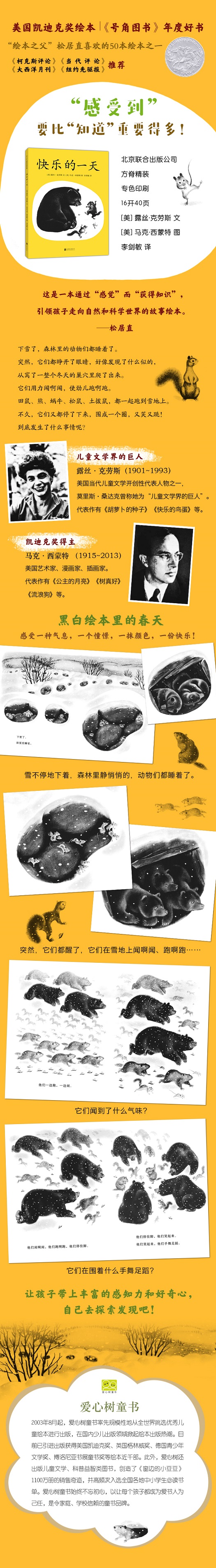 经典图画故事:白茫茫的下雪天,大地一片静寂。田鼠躲在地洞里睡觉,熊躲在山里睡觉,蜗牛躲在树洞里睡觉,松鼠、土拨鼠,也全部都在窝里睡觉……有一天,它们纷纷张开眼睛,探出头来闻了闻,跑动起来。究竟发生了什么事呢?