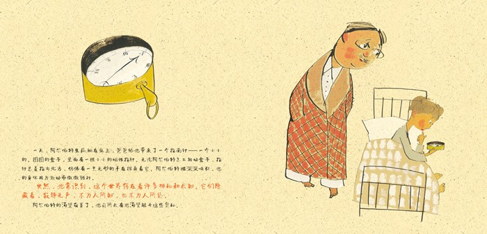 2. 温暖的色调,让孩子容易阅读;书中水粉、钢笔和墨水构成的画面,饱含着幽默和孩子气,传达了爱因斯坦的独特个性;红色文字则传达了文本的重要思想;每一张书页用斑驳的纹理纸印刷,强化了“世间一切都由原子构成”这个概念。孩子们将从一本书的各个细节,体会爱因斯坦的精神和理念。