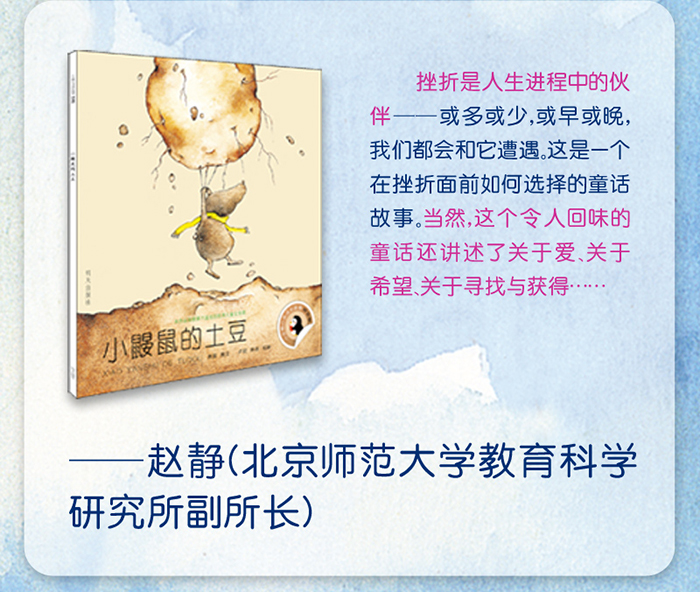 挫折是人生进程中的伙伴——或多或少,或早或晚,我们都会和它遭遇。在挫折面前如何选择,可能会对我们的一生产生重要的影响。就像《小企鹅心灵成长故事:小鼹鼠的土豆》故事里的小鼹鼠。找不到宝贝时,小鼹鼠能够继续不停地挖掘,相信自己“总会找到些什么”;受到鼹鼠姑娘和其他小鼹鼠嘲笑时,小鼹鼠坚信“这是我的土豆,不管别人怎样。