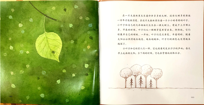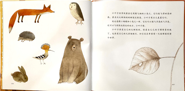 小叶子很爱自己的大树妈妈,很爱自己已经习惯倚靠的枝丫,也很爱自己的兄弟姐妹们。但它还是希望有一天能够看到整个世界。