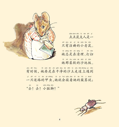 波特女士出生在一个富裕的家庭,她的父母很注重对子女的保护,从来不让波特姐弟俩和别的小朋友玩。于是,姐弟俩和一群小动物成了好朋友,包括青蛙、蜥蜴、小蛇、乌龟,当然还有兔子,这些小动物后来都被写进了故事里,成了主角。善于绘画的波特女士还给故事配上了精美的图画。今天,全世界的人都知道毕翠克丝?波特的名字和她创造的小动物:彼得兔、兔子本杰明、小松鼠纳特金、小猪布兰德、城市鼠詹尼和小猫汤姆等。《彼得兔和他的朋友们》畅销全球,被誉为“儿童文学中的《圣经》”。故事简单温馨,文图相映成趣,字里画间洋溢着深深的友情和暖暖的爱心,让孩子们的童年过得更为自在、快乐和自然。