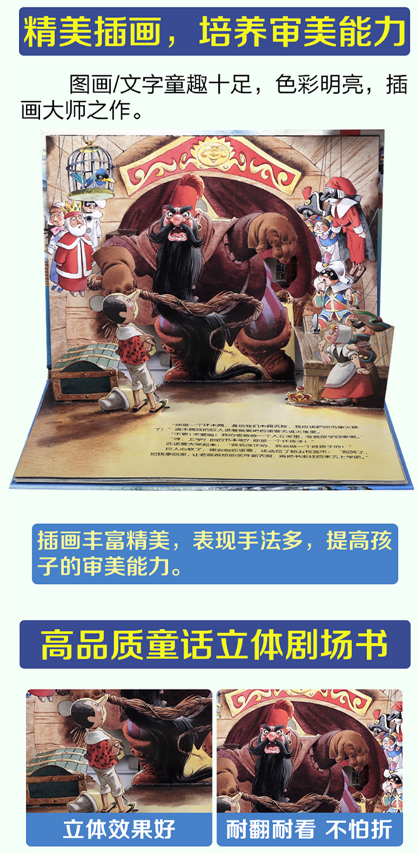 1.精选*广为流传的5篇经典童话,特邀意大利著名插画家托尼·沃尔夫精心绘制。2.每个跨页都设置成立体场景,犹如在剧场观看戏剧一样,带给孩子身临其境的感受。3.新版精选,华丽登场,给孩子*为震撼的阅读体验,让孩子的童年与众不同!