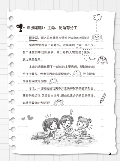 “阳光姐姐剧场派”系列是从“阳光姐姐小书房”系列中精选16部优秀的作品,并将之改编为可读性强,同时也适合学生在课堂上表演的有积极意义的课堂剧。每一册包括4个课堂剧,每个课堂剧分3幕,由人物对话和生动真人剧照组成,文字活泼,剧照生动,适合学生阅读和表演。