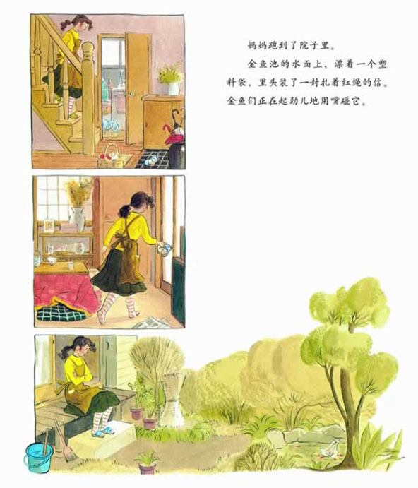 儿童图画故事。早上,真美子出门时,对妈妈说:“妈妈,你知道今天是什么日子?不记得了?不记得了?不记得了就去楼梯的第三个台阶。”说完,就唱着歌,蹦蹦跳跳地上学去了。妈妈马上就在楼梯的第三个台阶上,找到了一封扎着红绳的信。结果信上又指引妈妈找到了另一封信,就这样,一直一直“捉迷藏”,最终真相大白,今天是爸爸妈妈结婚十周年纪念日。故事设置了一个接一个悬念,吸引孩子一步步往下读,非常巧妙。另外,林明子的绘画洋溢着温暖的气息极富感染力。
