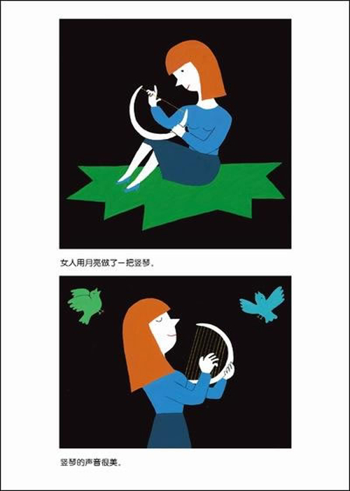咦,月亮不见了?原来是被一个男人摘回家,藏进了箱子里。月亮的形状每天都在变,男人看得很开心。可有一天,箱子被偷走了,小偷打开一看,里面什么都没有。月亮去哪儿了?后来,箱子又被一个女人捡到了,她用细细的月牙做了一把竖琴,琴声真美啊!月亮之后又会经历什么呢?