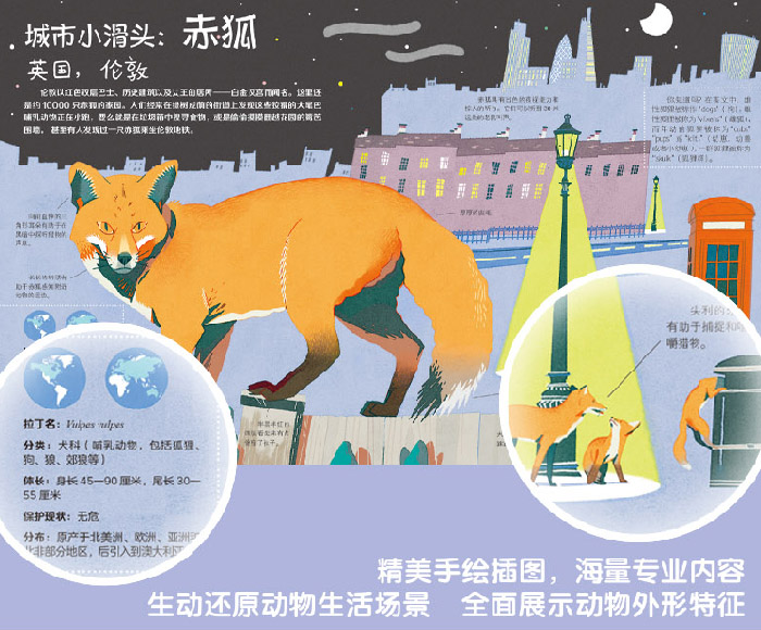 ●孤独星球编辑团队倾情打造,震撼呈现世界各地城市野生动物的传奇生存故事。 ●纽约插画师协会金奖获得者吉安卢卡•富利手绘插图,将科学与艺术完美融合,带来无与伦比的视觉体验。 ●趣味学习动物学知识,了解动物习性,满足孩子对野生动物的好奇心。引导孩子正确认识、了解野生动物。 ●传授自然观察技巧,锻炼孩子的观察和研究能力,让孩子在城市里也可以感受自然。