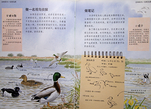 再次,非常推崇这套书里的写实的画风,让孩子很容易把现实所见与书中图片对照,得到清晰的答案。书里配图非常多,讲到的每种事物都能找到相应的图谱。还有很多小图示,比如讲到鸟的飞行时,为了把各种鸟的飞行状态表达得更直观,作者用红线画了波浪形或者弹簧形的线条来表示鸟的飞行路线,看起来非常可爱、温馨。给孩子看的图要好辨识、直观、形象,这套书做到了!
