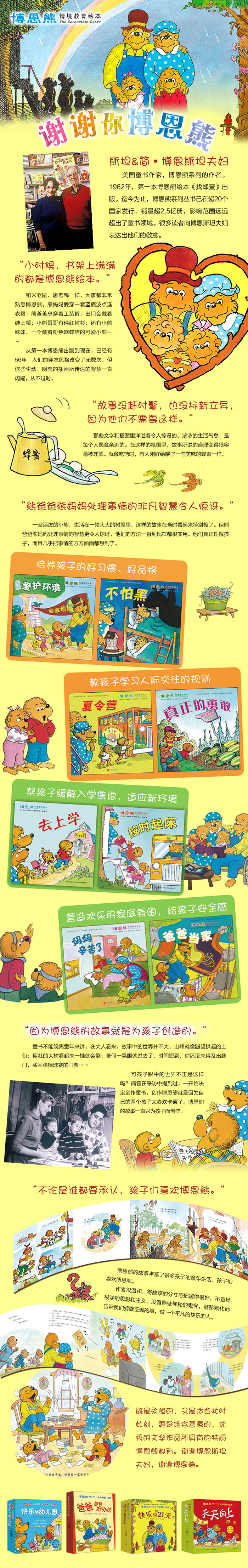 “贝贝熊系列丛书”是由世界著名品牌美国兰登书屋和全球孩子的“行为教育之父”斯坦·博丹联袂打造的一套畅销全球的儿童行为教育丛书,热销全球30多个国家,行销40余年,销量高达2.4亿册,销售量及畅销时间均为少儿读物世界之最。贝贝熊图书是全球家庭教育的首选图书,在创造了多个境外出版神话的同时,使千千万万的家庭找到了育儿的最佳途径。