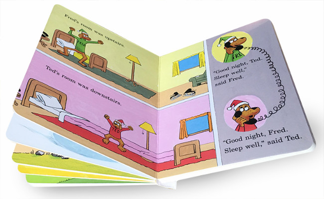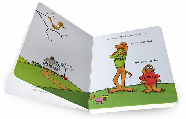 故事用押韵的语句向小朋友展示了一系列反义词。听完故事后,带孩子一起在日常用品中寻找反义词的存在吧。比如:椅子和小板凳(big little),兔子和乌龟(fast slow),干毛巾和湿毛巾(wet dry)。