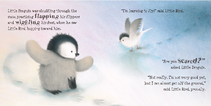 小企鹅重要的一天开始啦!小企鹅次学游泳很紧张,一开始不敢尝试往大海里跳,但是他看到了小鸟通过学习飞行飞起来了,看到小海豹通过耐心钓到了鱼,看到小鲸鱼通过不断练习能在海浪上面跳跃,看着小伙伴们都滑入水中,玩着许多有趣的游戏,虽然还是紧张,但想到了他的朋友们,他们是多么不怕学习新事物,终于鼓起勇气加入了他们的游戏。