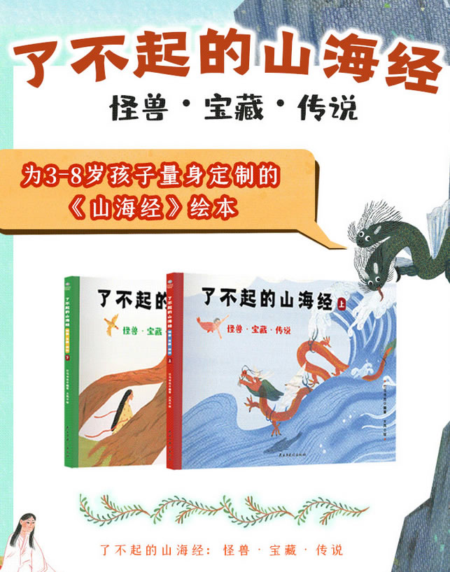 《了不起的山海经》是一本根据《山海经》编绘的启蒙绘本,《山海经》被称为“史地之权舆,神话之渊府”,内容博大,无所不包。它的了不起,主要体现在三个方面。首先,《山海经》中不仅记载了大量的山丘、水道、邦国等地理信息,还记载了上古人们的创造发明和实践活动,特殊的自然现象和宗教祭祀活动等,具有非凡的文献价值。其次,书中描绘了奇幻人神、异兽、鱼鸟等多种奇异形象,留存了许多中国神话传说,夸父逐日、羿射九日、精卫填海、等神话故事都来源于此。*后,《山海经》历久弥新,每代人都能从这本书中获得启迪,是后世文学艺术创作的创意源泉。
